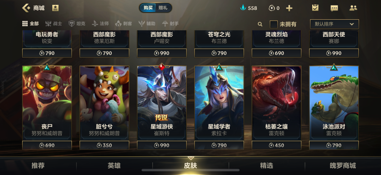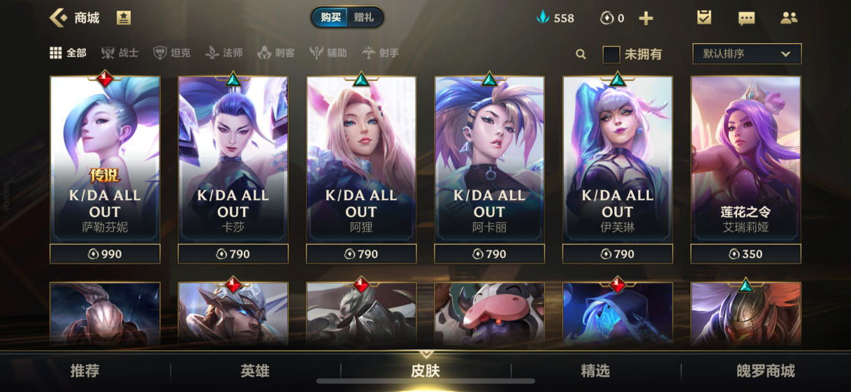 游戏内皮肤价格与端游不同,手游内的皮肤价格为350/450/690/790/990这个五个阶段。