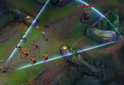 1.1、烬在前期的对线上算得上是强势英雄,上线推兵抢二这里有一个小技巧,可以把后排兵全部A成残血,再用Q技能去清兵的话就可以依靠伤害的提升快速清理兵线,当然此方法也能运用于消耗敌方英雄。
