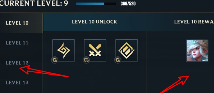 4.在这里我们可以看到每升到一定的级数就会领取一些奖励,这些奖励包括英雄,皮肤,和金币等