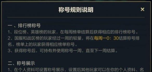英雄联盟手游是于每周一的0:30进行结算称号排名。