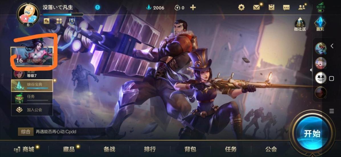 1.打开英雄联盟手游后,点击左上的活动。