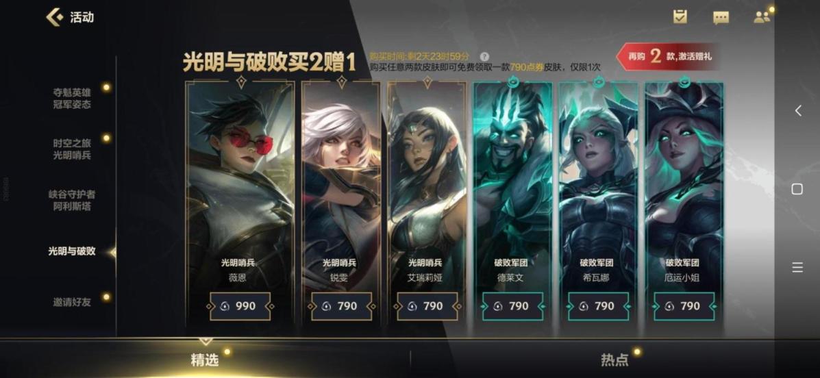 2.打开活动后,点击“光明与破败”活动购买德莱文的破败军团即可。