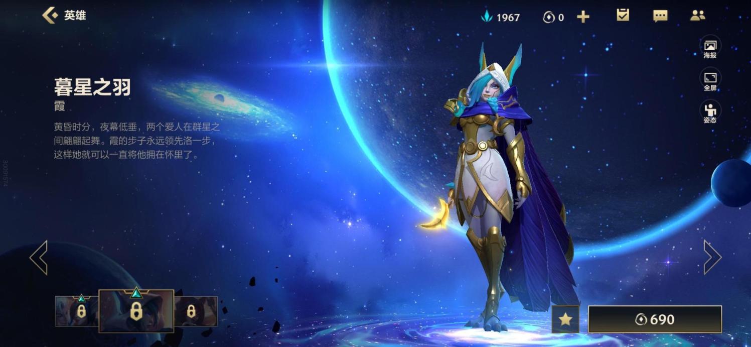 1.LOL手游暮星之羽霞的手感和特效都不错,打击感也很好,商城售价只需要690点券,折合人民币69元。