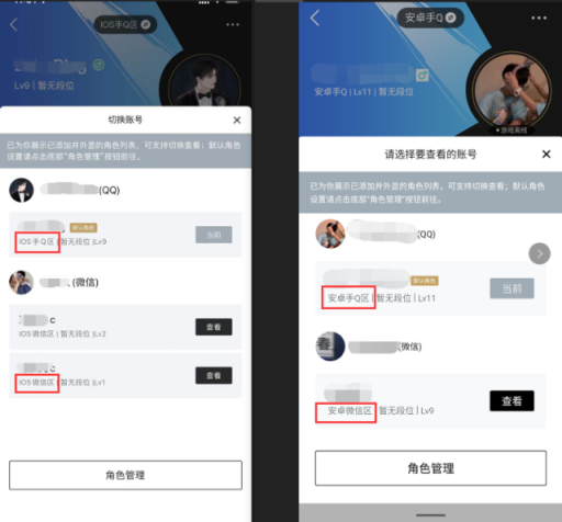 分区。按照手机系统和登录账号分区,可分为四个区。