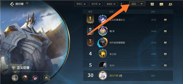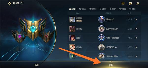 二、将榜单信息直接切换至英雄榜单中,该榜单中可直接查看到所拥有的英雄评分情况;