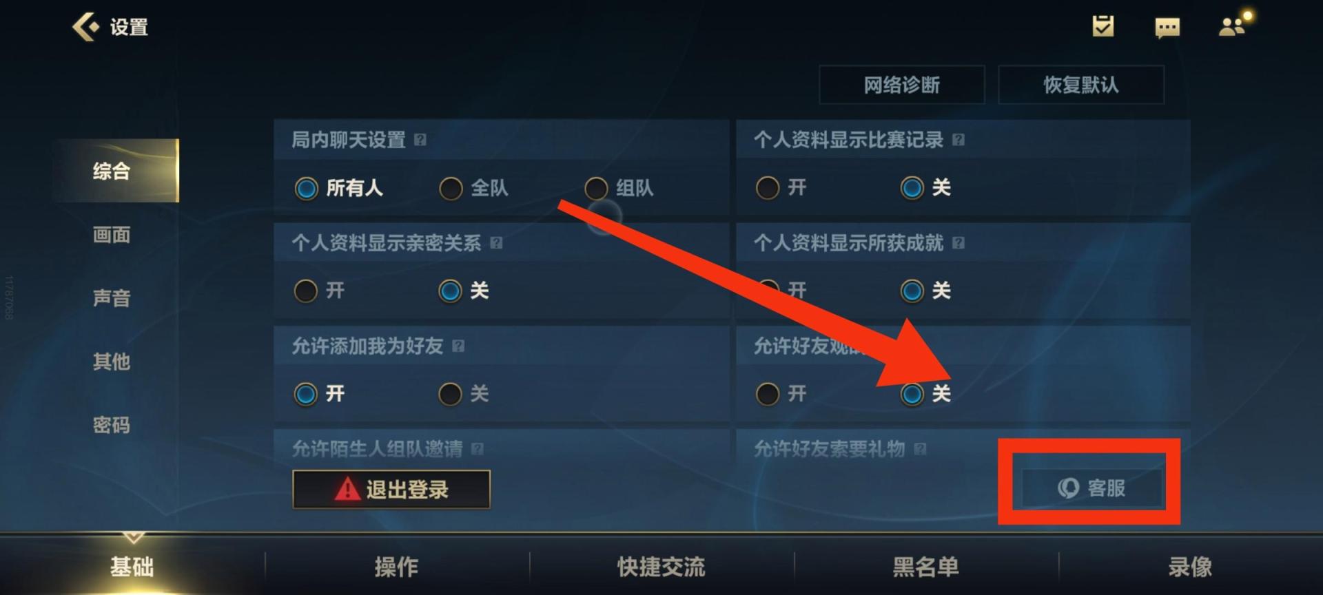 2.进入设置页面后,点击页面右下角的“客服”,如下图所示: