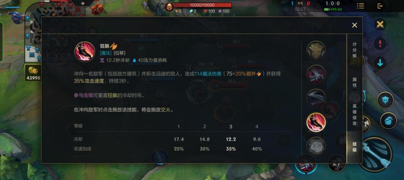 ④莎弥拉的3技能是狂飙,效果是:冲向一名敌军(包括敌方建筑)并斩击沿途的敌人,造成魔法伤害并获得35%攻击速度,持续3秒。参与击败可重置狂飙的冷却时间。在冲向敌军时点击施放该技能,将会施放交火。