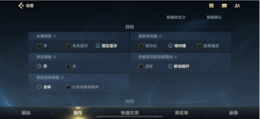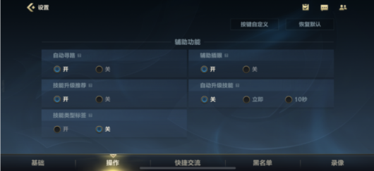 1、从英雄联盟手游设置中的操作界面可以看到,并没有快捷施法相关的选项,手游中找不到快捷施法是因为未上线此功能。