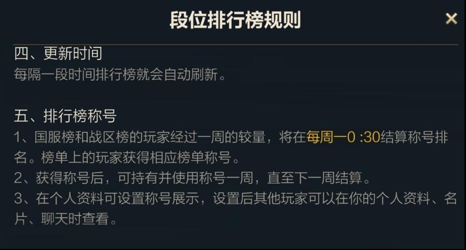4、但是这个称号只能使用一周,因为下周又要重新结算,若没有达到要求,那么就无法获得这个称号了,简单来说就是称号的使用期限是一周,比如这周你亚索是全服前100名,如果下周一零点刷新后,有100个玩家的亚索评分比你高,那么就会失去全服前100名亚索的称号。