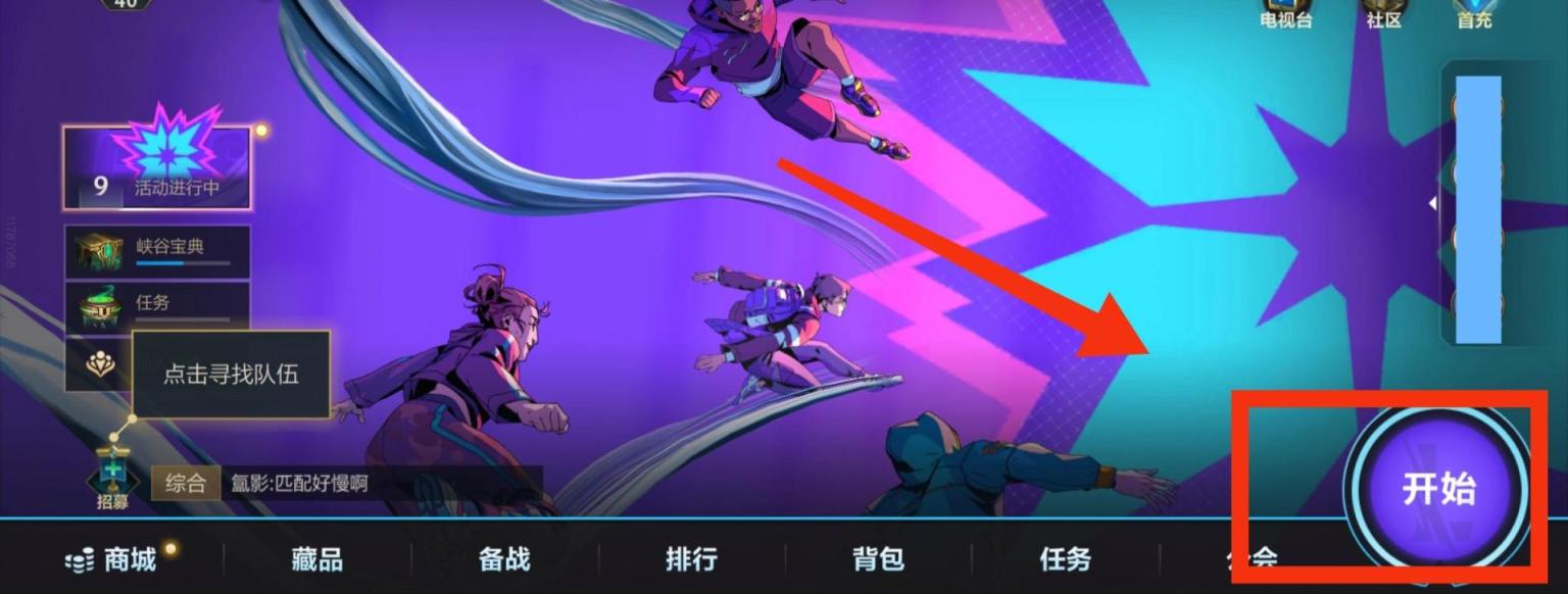 1.在英雄联盟手游游戏首页点击右下角”开始“,如下图所示: