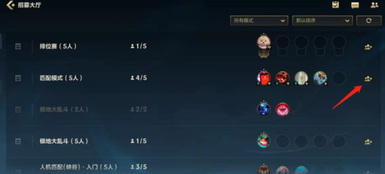 2然后在招募大厅页面中,找到相应的队伍,点击加入选项