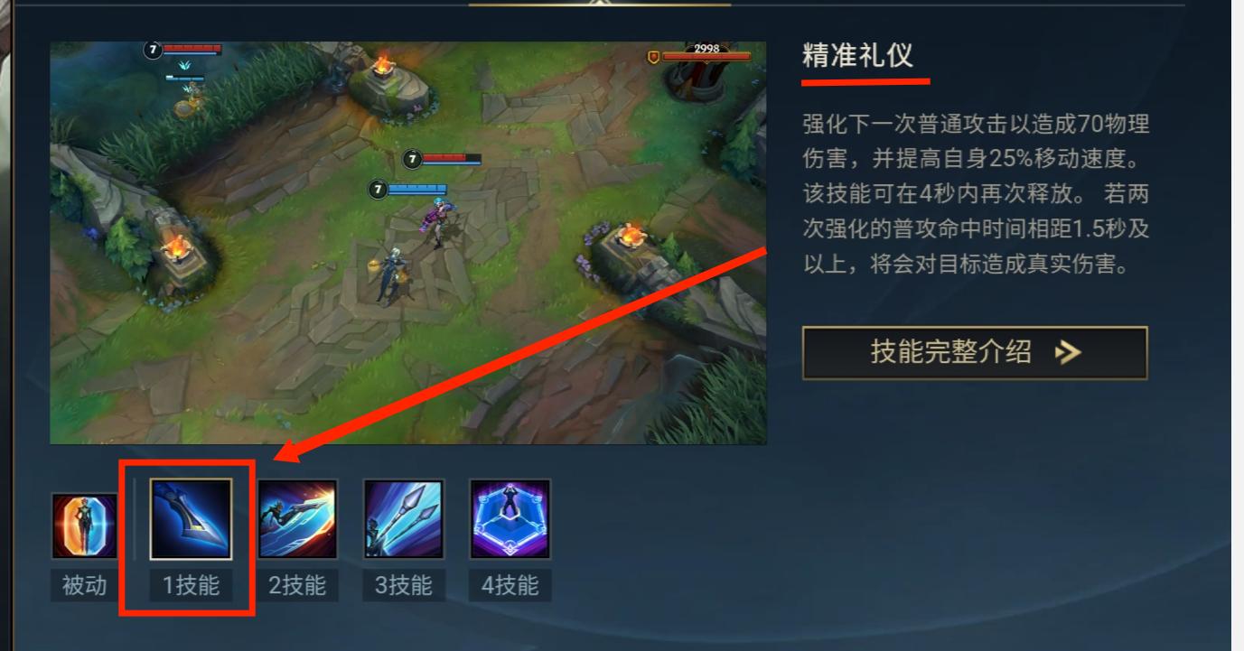 在英雄联盟中,青钢影主升【1技能】,名叫精准礼仪,1技能是该英雄的主要伤害来源,可强化普攻并提高移速,提供大量的真实伤害。