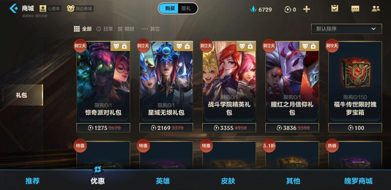 1、打开商城,点击下方的优惠,可以购买福牛传世限时魄罗宝箱。