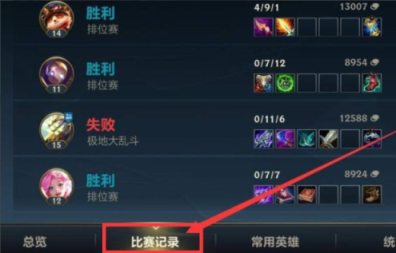 3.在底部点击比赛记录,可以看出查看别人战绩,查看别人的战绩对方是不会知道的。