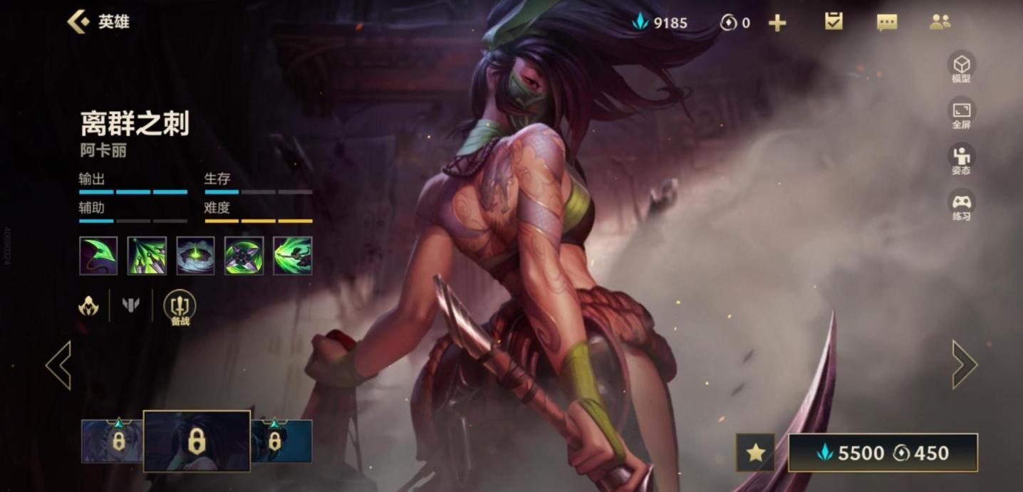 英雄联盟手游的离群之刺阿卡丽是一名神出鬼没的英雄,操作难度比较高,飞雷神之术让阿卡丽深受玩家喜欢,下面介绍玩法思路: