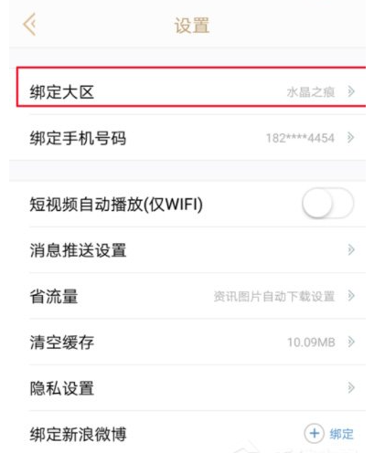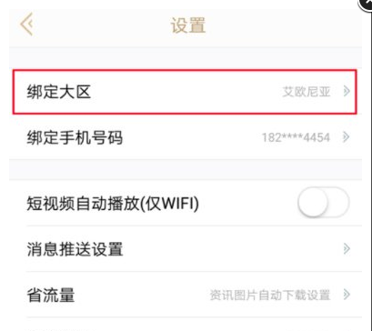 3、第一栏就是“绑定大区”,选择之后直接绑定即可。