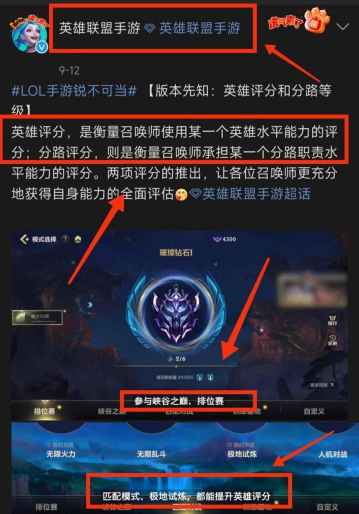 加。在英雄联盟手游中,英雄评分是衡量召唤师使用某一个英雄水平能力的评分,参与峡谷之巅、排位赛、匹配模式、极地试炼,都能提升英雄评分。如下图所示: