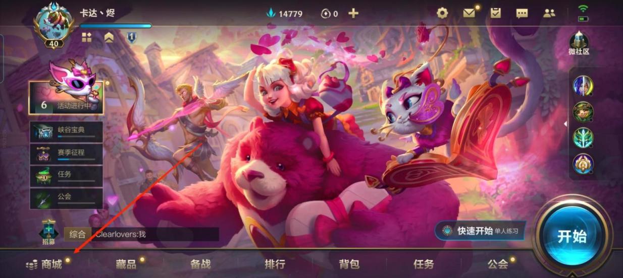1,在LOL手游的主界面中点击左下角的商城按钮。
