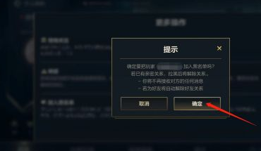 5.在弹出的窗口点击确定就可以将其拉入黑名单,加入黑名单后将不好能再接收对方的任何消息且会自动解除好友关系和亲密关系。