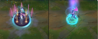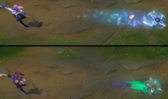 4.E技能方面,新的KDA ALL OUT飞镖会显得比较璀璨,这得益于新的KDA ALL OUT实际是以巨星的身份亮相,不同于2018年KDA歌手的身份,所以特效呈现上会更加璀璨,所有新的KDA ALL OUT皮肤都是这样的特效元素。