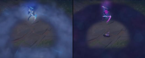 3.W技能方面,不知为何新的KDA ALL OUT皮肤并没有烟雾弹显示出现,有点奇怪,在进入霞阵之后,两款皮肤的模型都会发生变化,这个变化之后的模型在两款皮肤的MV中也有出现,2018KDA变化之后的模型比较出色,而且也被众多人COS过,知名度挺高的。