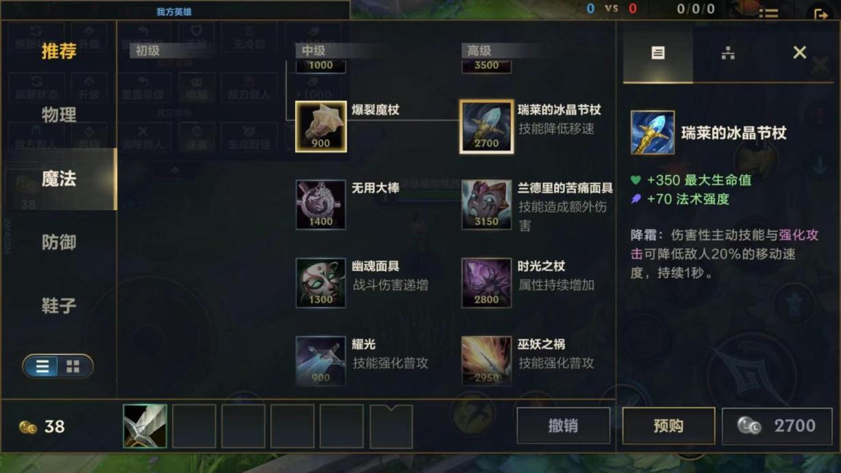 英雄联盟手游冰杖是叫瑞莱的冰晶节杖,它的效果是强化攻击可降低敌人百分之20的移动速度,持续1秒,是个不错的装备。