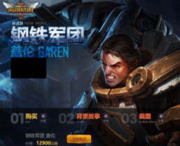 英雄联盟盖伦皮肤钢铁军团的价格是12900点券,钢铁军团盖伦这款皮肤期限永久。