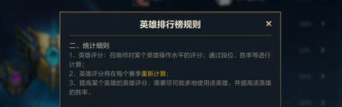 3,英雄评分将在每个赛季重新计算,提高某个英雄的英雄评分,需要尽可能多地使用该英雄,并提高该英雄的胜率。