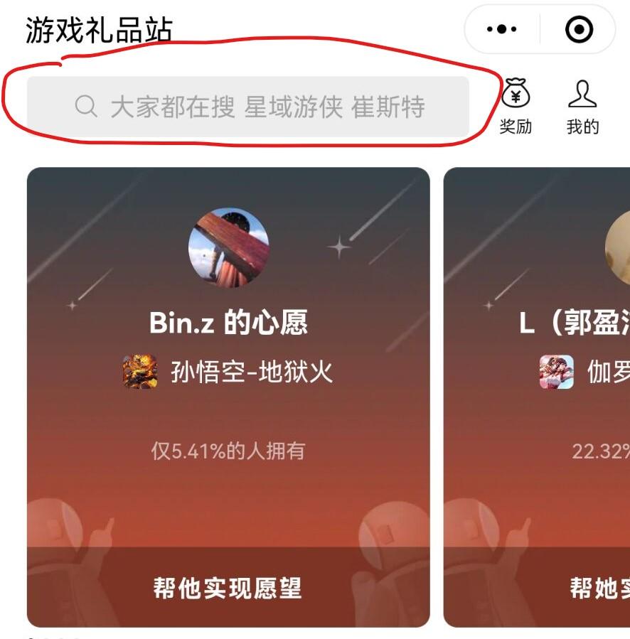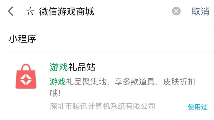 2、在小程序界面搜索微信游戏商城,点击游戏礼品站。