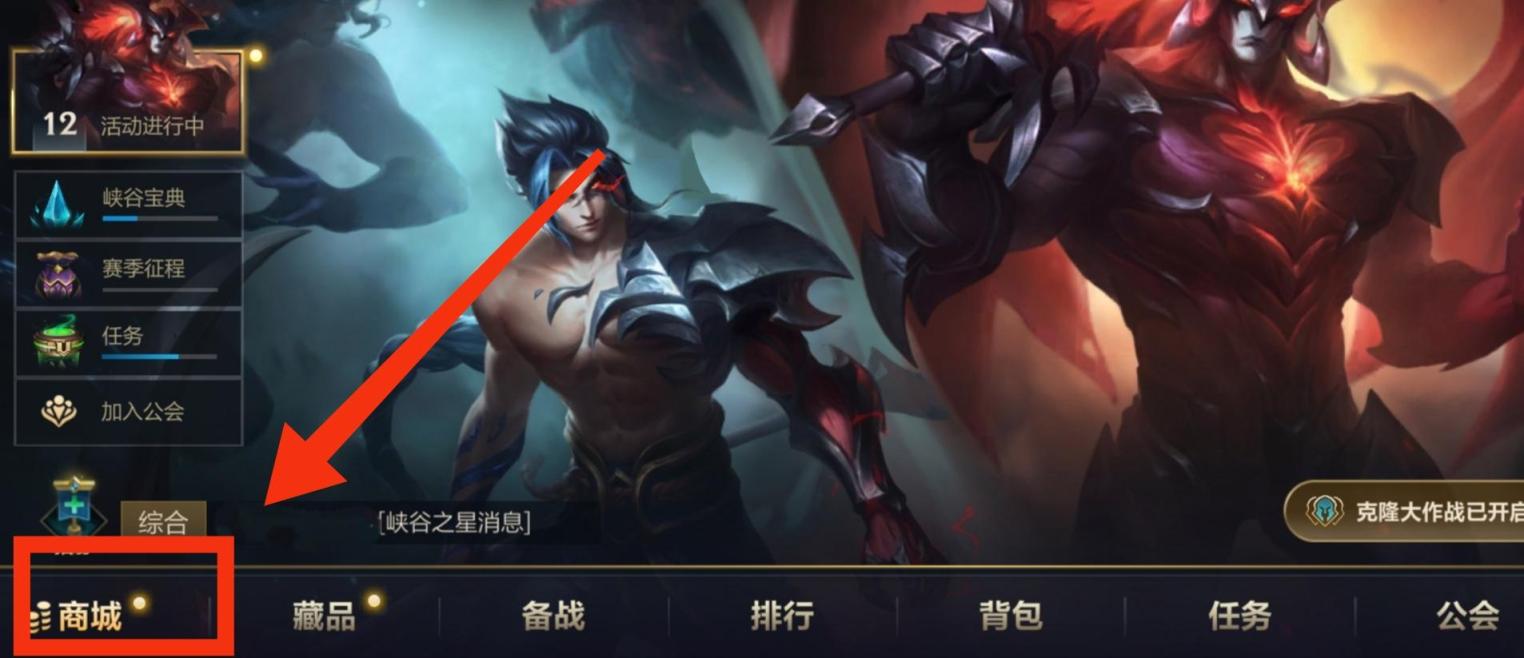 1.进入英雄联盟手游,在游戏首页点击左下角的”商城“。如下图所示: