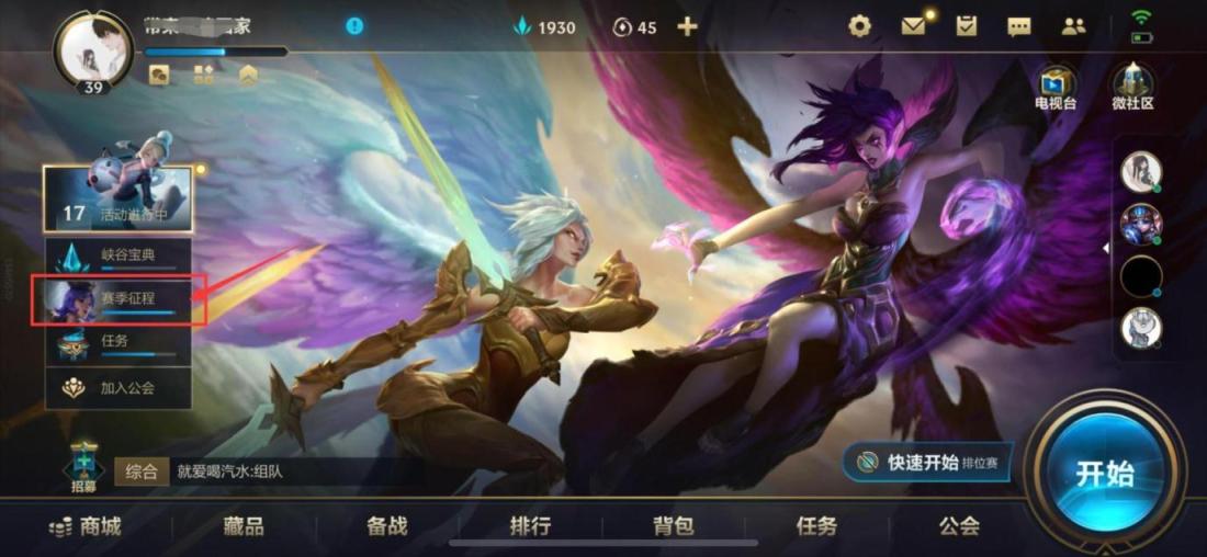 1、首先我们在游戏的主页面中,找到左边活动下方的赛季征程活动选项,并且点击进入到此活动页面。