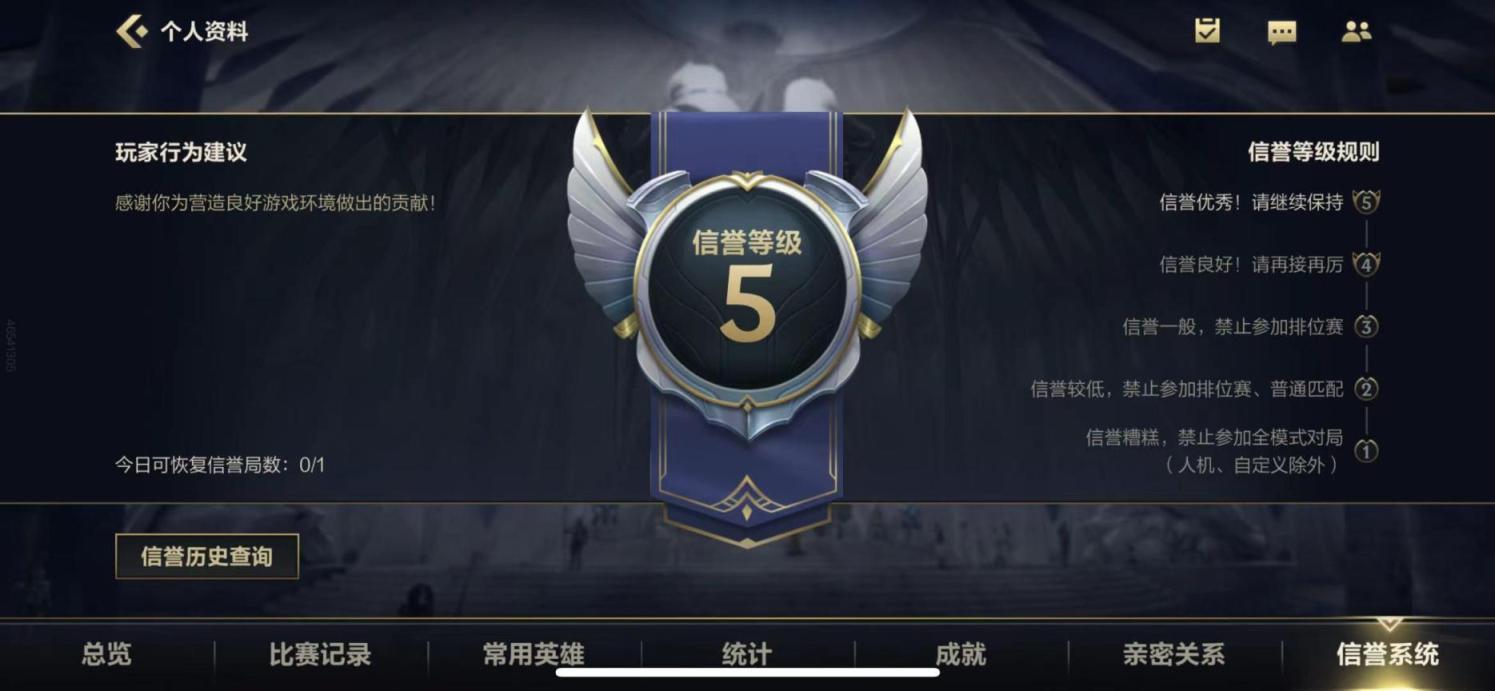 3.当玩家的信誉等级为三、四时,可以通过打匹配来恢复自身的信誉等级,而一天只能通过一局来恢复相应的信誉等级。
