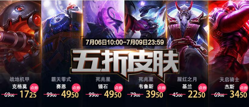 2、根据端游的皮肤出6个月以上才会有5折活动推出,手游也可能会继承这个设定,但那至少也是六个月以后了。