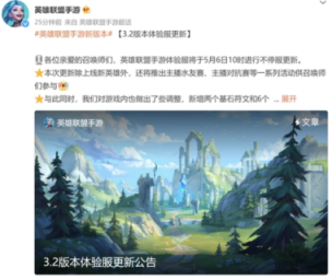英雄联盟手游3.2体验服于2022年5月6日更新。
