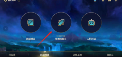 玩家在模式选择中选择匹配对战时会发现还有一个极地大乱斗地图,这个地图获得的经验也比人机多,而且这个地图只有一条路,所以说结束的也很快。