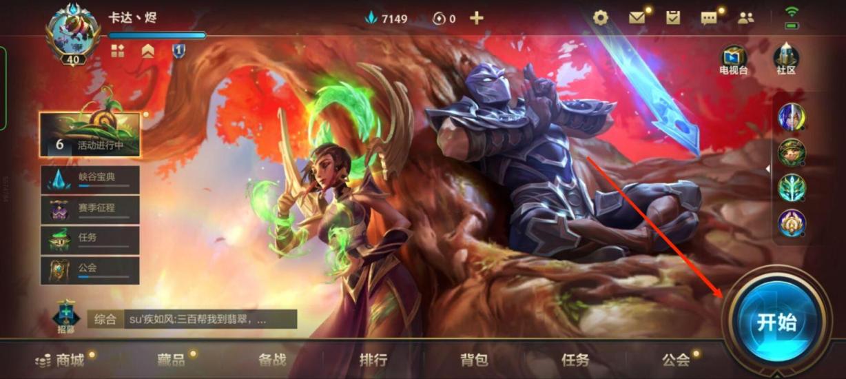 1,首先,在LOL手游的主界面中点击右下方的开始按钮。