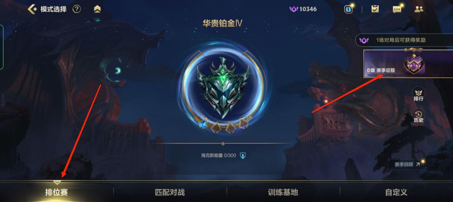 2,然后点击排位赛,在排位赛界面点击右侧的赛季征程。