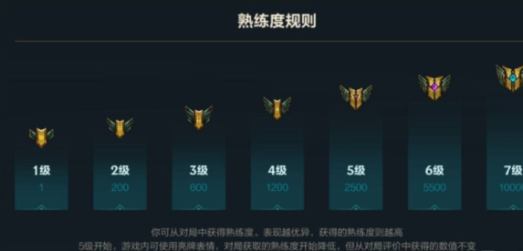 2、5级开始,游戏内可使用亮牌表情,对局获取的熟练度开始降低,但从对局评价中获得的数值不变,英雄熟练度主要还是靠S和A级评价给的,如果没有拿到评价就只能加十多点熟练度,升到5级之后无评价给的熟练度更少。
