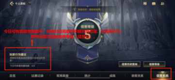 如果想要恢复信誉等级(信誉分),那么就需要玩家在游戏对局中保持良好的游戏行为,如积极对待游戏,无中途退出游戏等违规行为。在信誉系统左下角,有一个玩家行为建议和今日可恢复信誉局数,只要玩家在规定局数内,正常积极的完成游戏对局,那么信誉等级(信誉分)会往上升级加分。