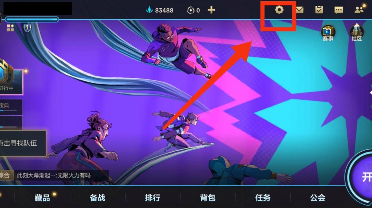 1.进入英雄联盟手游,在游戏首页点击右上角的”设置“图标,如下图所示: