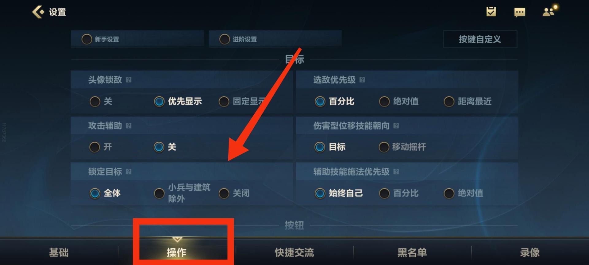 2.进入设置界面后,点击最下面一排中第二个选项”操作“,如下图所示: