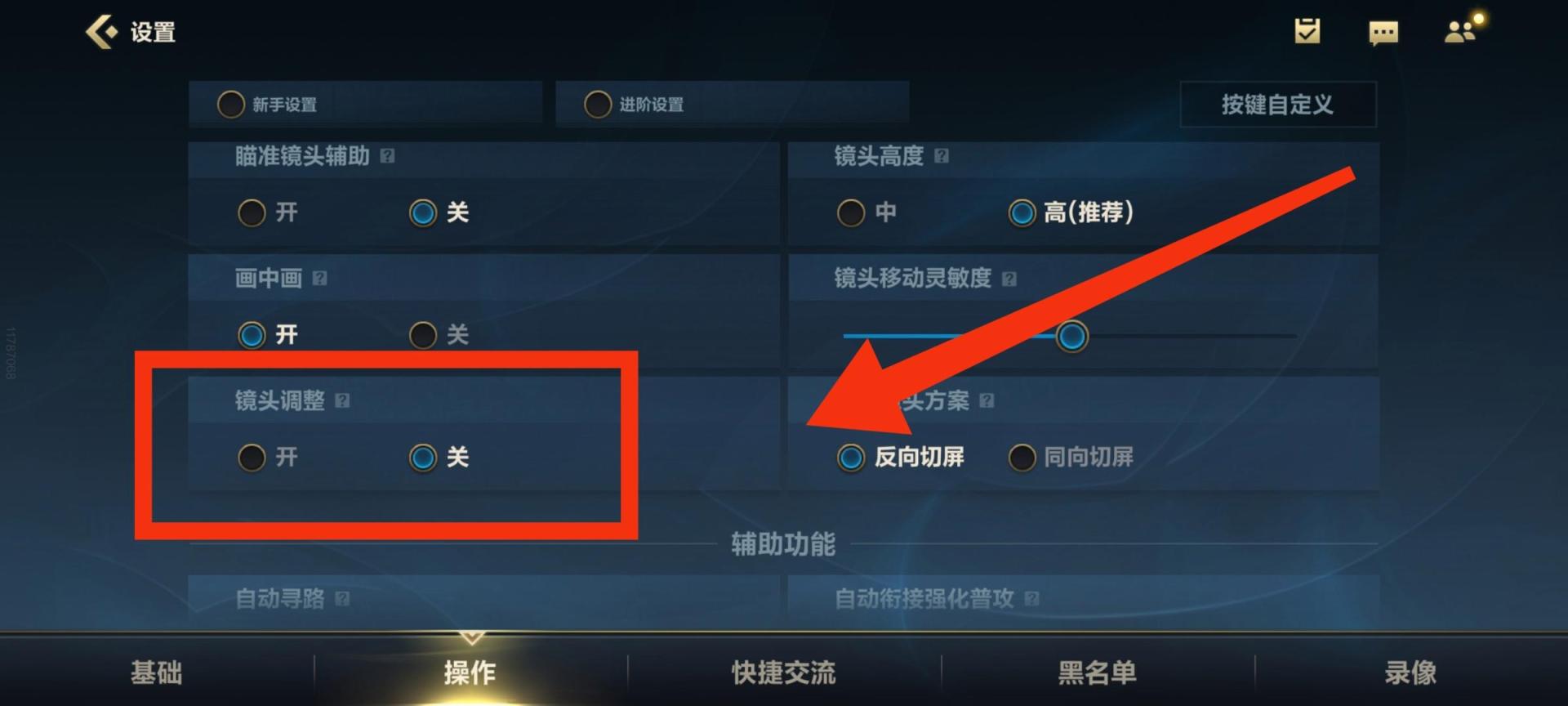 3.在操作界面下滑,找到”镜头调整“,选择”开“即可。如下图所示:
