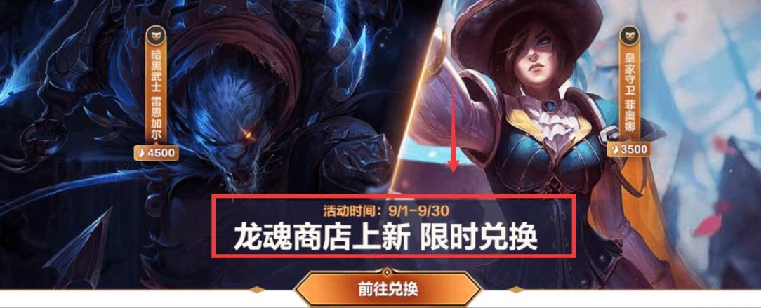 2.上新时间:2022.9.1-2022.9.30,上新皮肤是暗黑武士 雷恩加尔和皇家守卫 菲奥娜。如下图所示: