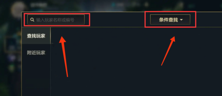 3.进入查找玩家界面后,在左上角的方框中输入玩家名称或编号,或在右侧点击“条件查找”寻找对应要求玩家。如下图所示: