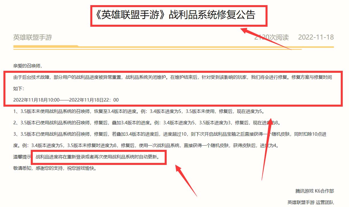 暂时的游戏后台技术故障。根据英雄联盟手游官方发布的“战利品系统修复公告”可知,由于后台技术故障,部分用户的战利品进度被异常重置,战利品系统关闭维护。但在修复完成后战利品进度将在重新登录或者再次使用战利品系统时自动更新。如下图所示: