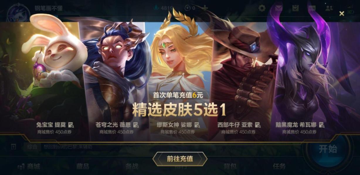 英雄联盟手游首充6元可在以下五款皮肤中选择。