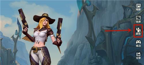 2.然后在皮肤界面中,点击右上角的姿势功能图标。