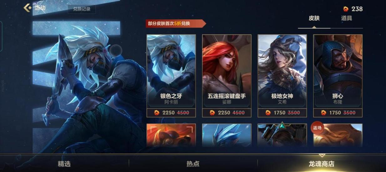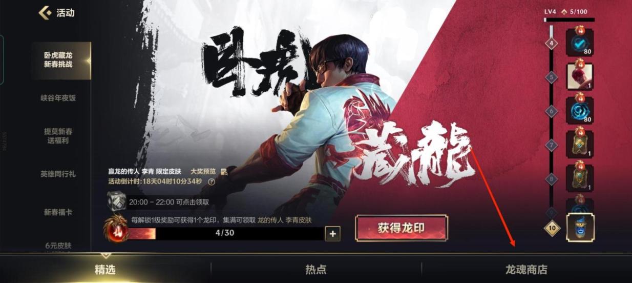 2,在下方有三个大按钮,分别是“精选“”热点”“龙魂商店”,点击“龙魂商店”。