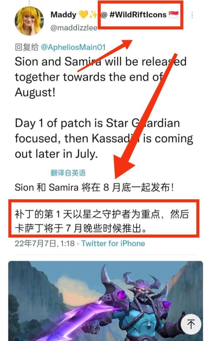 2.英雄联盟手游设计师Maddy发文称:3.3版本的更新,重心放在星之守护者上面。新英雄卡萨丁将会延迟上线,但仍然是七月份。如下图所示: