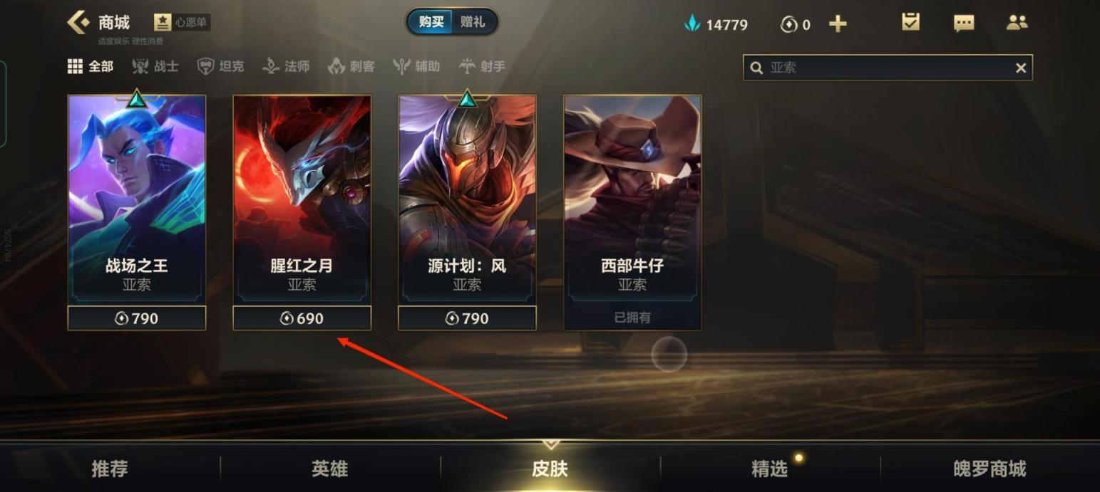 lol手游腥红之月亚索多少点券?